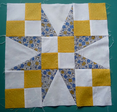 This is the final block. The center fan is mighty wonky, but at least the points in this block come together pretty well.
